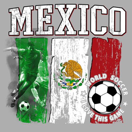 "Mexico - World Soccer" is an excellent Soccer and souvenir design for adults and teens of all ages. Show your national pride this summer by getting these hot World Soccer heat transfers! This quality heat transfer can be applied to lights, darks, and mid-tone colored apparel including t-shirts, tank tops, sweaters, hoodies and more.